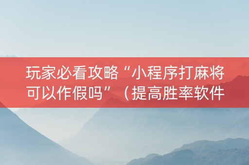玩家必看攻略“小程序打麻将可以作假吗”(提高胜率软件)