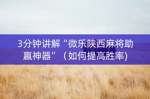 3分钟讲解“微乐陕西麻将助赢神器”(如何提高胜率)