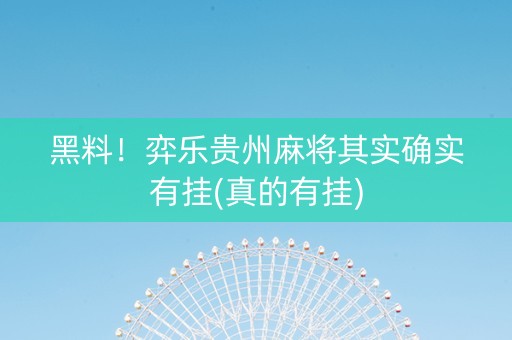 黑料!弈乐贵州麻将其实确实有挂(真的有挂)