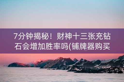 7分钟揭秘!财神十三张充钻石会增加胜率吗(铺牌器购买)