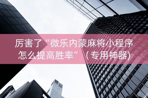 厉害了“微乐内蒙麻将小程序怎么提高胜率”(专用神器)