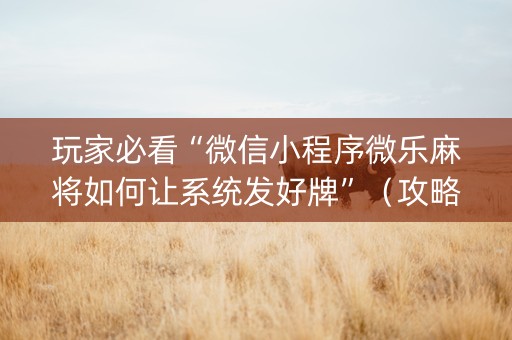 玩家必看“微信小程序微乐麻将如何让系统发好牌”(攻略插件)