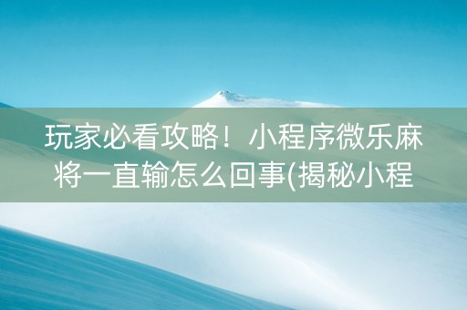 玩家必看攻略!小程序微乐麻将一直输怎么回事(揭秘小程序攻略插件)
