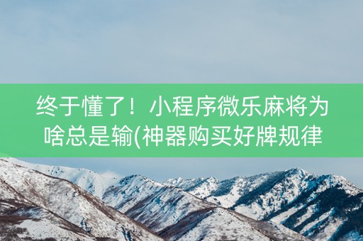 终于懂了!小程序微乐麻将为啥总是输(神器购买好牌规律)