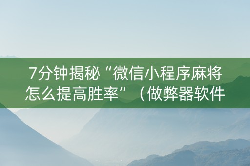 7分钟揭秘“微信小程序麻将怎么提高胜率”(做弊器软件下载)