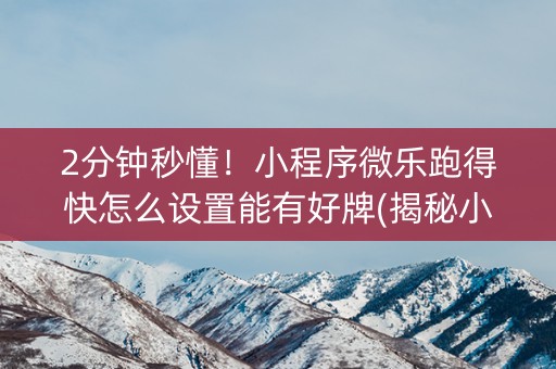 2分钟秒懂!小程序微乐跑得快怎么设置能有好牌(揭秘小程序助赢软件)