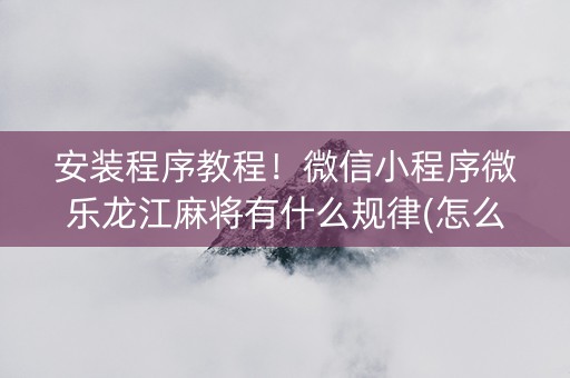 安装程序教程!微信小程序微乐龙江麻将有什么规律(怎么抓到好牌)