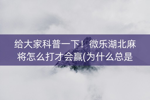 给大家科普一下!微乐湖北麻将怎么打才会赢(为什么总是输)