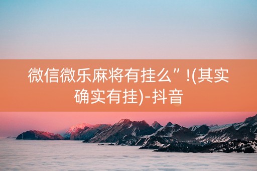 微信微乐麻将有挂么”!(其实确实有挂)-抖音
