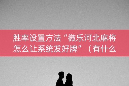 胜率设置方法“微乐河北麻将怎么让系统发好牌”(有什么诀窍)