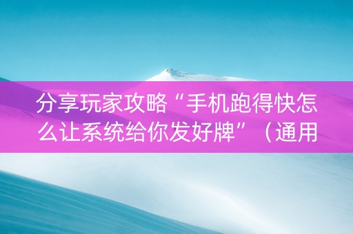 分享玩家攻略“手机跑得快怎么让系统给你发好牌”(通用挂软件多少钱)