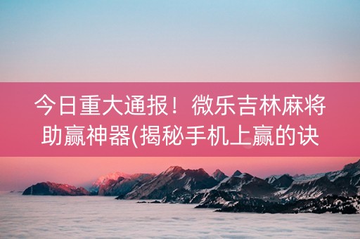 今日重大通报!微乐吉林麻将助赢神器(揭秘手机上赢的诀窍)