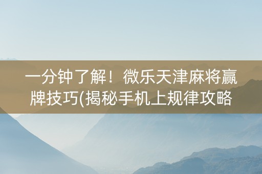 一分钟了解!微乐天津麻将赢牌技巧(揭秘手机上规律攻略)