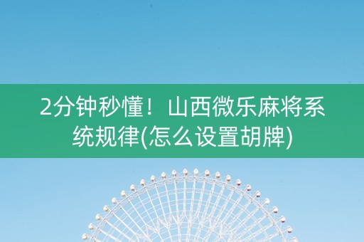 2分钟秒懂!山西微乐麻将系统规律(怎么设置胡牌)