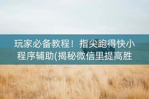 玩家必备教程!指尖跑得快小程序辅助(揭秘微信里提高胜率)