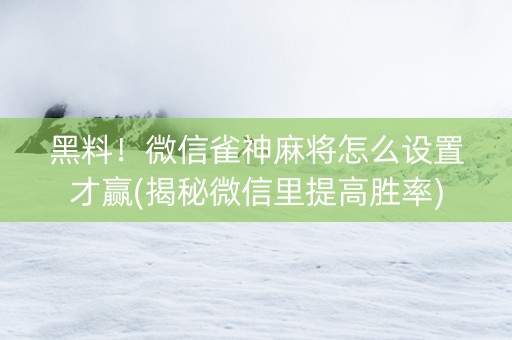 黑料!微信雀神麻将怎么设置才赢(揭秘微信里提高胜率)
