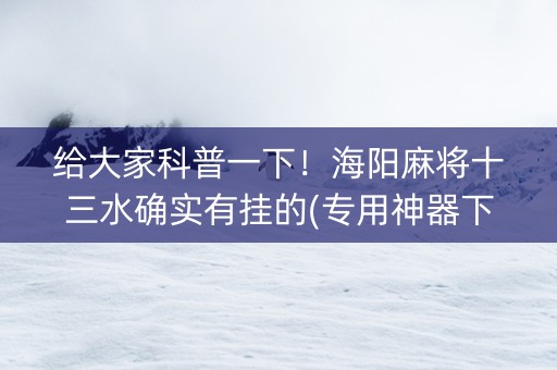 给大家科普一下!海阳麻将十三水确实有挂的(专用神器下载)