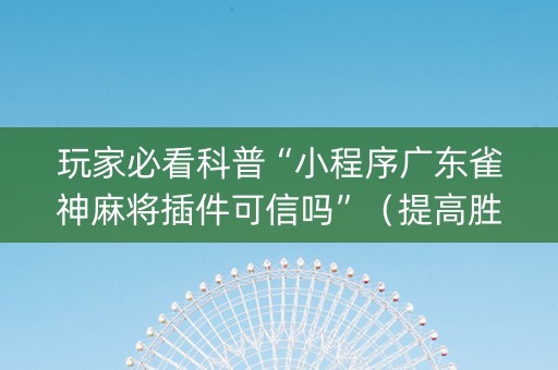 玩家必看科普“小程序广东雀神麻将插件可信吗”(提高胜率软件)