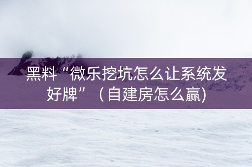 黑料“微乐挖坑怎么让系统发好牌”(自建房怎么赢)