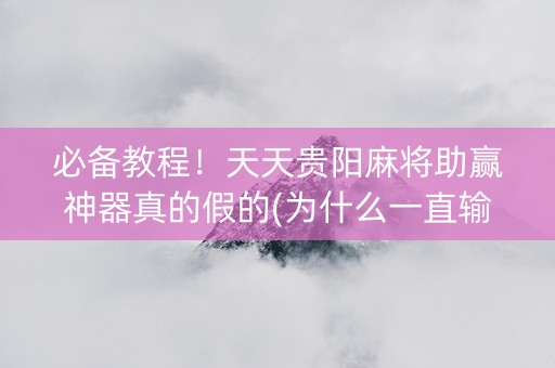 必备教程!天天贵阳麻将助赢神器真的假的(为什么一直输)