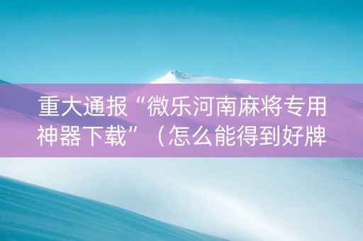 重大通报“微乐河南麻将专用神器下载”(怎么能得到好牌)