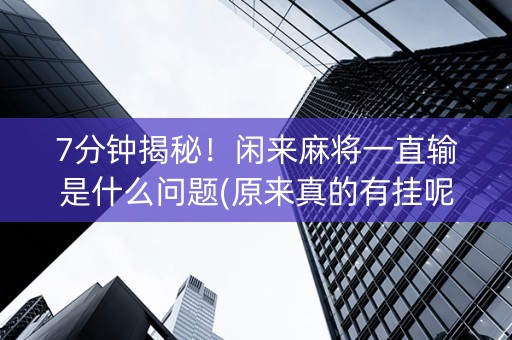 7分钟揭秘!闲来麻将一直输是什么问题(原来真的有挂呢)