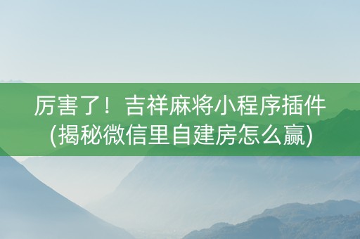 厉害了!吉祥麻将小程序插件(揭秘微信里自建房怎么赢)