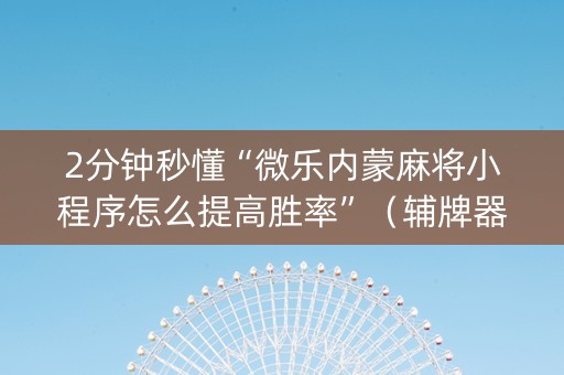 2分钟秒懂“微乐内蒙麻将小程序怎么提高胜率”(辅牌器插件购买)