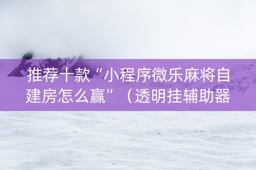 推荐十款“小程序微乐麻将自建房怎么赢”(透明挂辅助器)