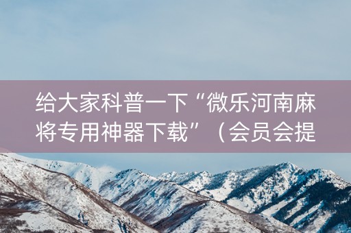 给大家科普一下“微乐河南麻将专用神器下载”(会员会提高胜率吗)